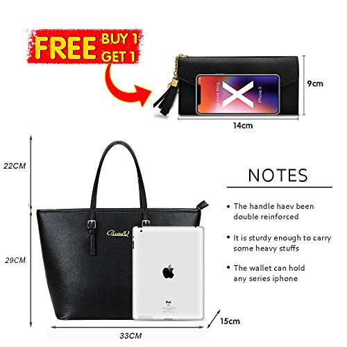 Specification: BestoU Damen Handtasche, Shopper Handtasche Schwarz mit Quastengeldbörse und Pelz Kugel Plüsch Schlüsselring, Elegante große Damenumhängetasche 2pcs Set, für Büro Schule Einkauf( Verbesserte Version)
