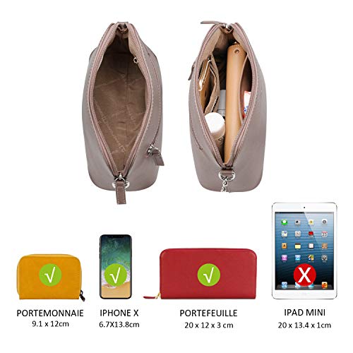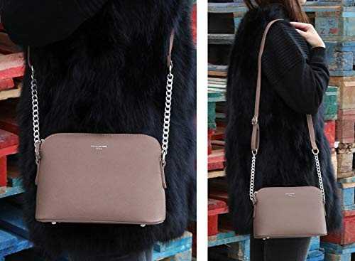 David Jones kleine schoudertas voor dames, saffianoleer, vaste schoudertas, schouder ketting-schouderband, handtas met ritssluiting, geschikt voor avondtas of clutch, voor in de stad, bruin