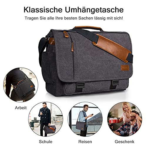 Specification: Estarer Schoudertas/laptoptas 14/15,6-17/17,3 inch voor werk uni canvas grijs, grijs, 17-17.3 Zoll,