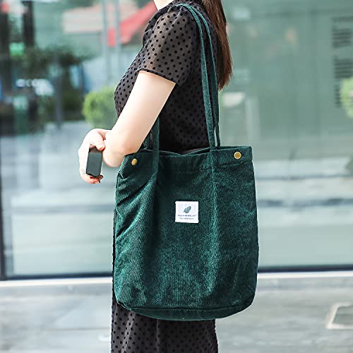 Etercycle Cord schoudertas voor dames, grote corduroy tas, casual handtas, modieuze stoffen tas voor dagelijks gebruik, kantoor, schooluitstapje en winkelen, donkergroen, m