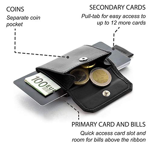 Perfecte slim wallet: deze kleine portemonnee biedt ruimte aan bankbiljetten, munten en tot 13 pasjes. De minimalistische portemonnee heeft creditcardformaat (creditcards, bankkaart, rijbewijs, identiteitskaart, enz.).