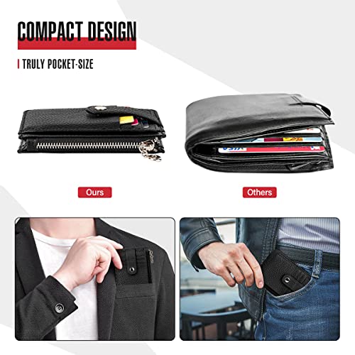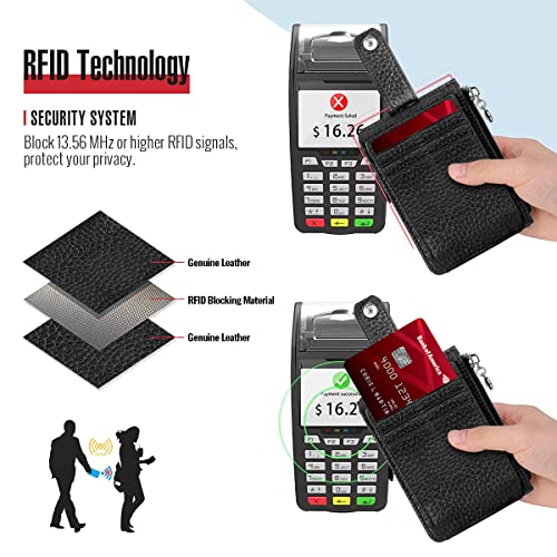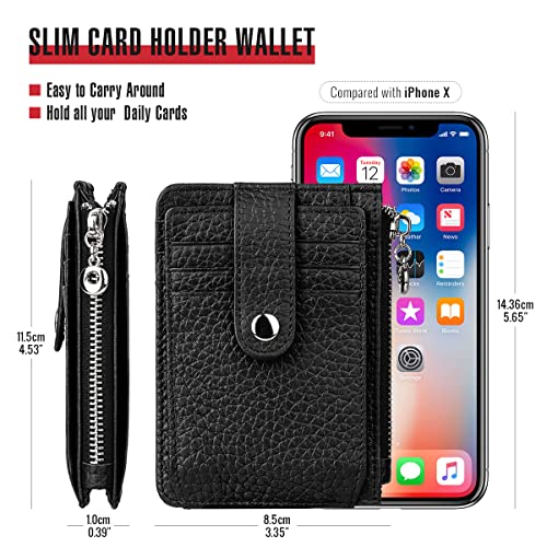 LUROON Creditkaarthouder van echt leer, voor dames en heren, kaarthouder, portemonnee, RFID-portemonnee, kaarthouder, kleine ritssluiting, portemonnee, geschenkdoos, 11 kaartvakken, zwart, s, Casual