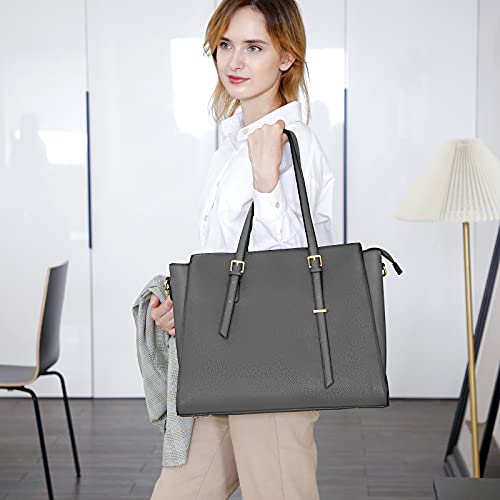 NEWHEY Handtasche Damen Shopper Damen Große Grau Gross Laptop Tasche 15.6 Zoll Elegant Leder Umhängetasche für Büro Arbeit Business Schule