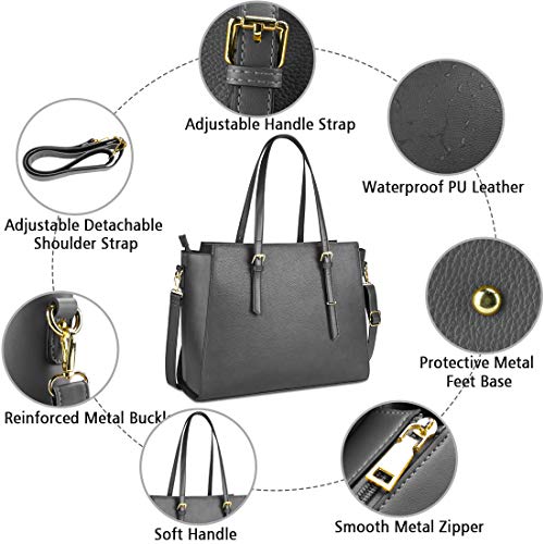 Specification: NEWHEY Handtasche Damen Shopper Damen Große Grau Gross Laptop Tasche 15.6 Zoll Elegant Leder Umhängetasche für Büro Arbeit Business Schule
