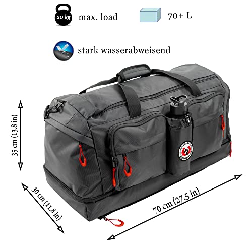 Capaciteit: De sporttas heeft een volume van ca. 70 liter en is 70 x 30 x 35 cm groot. Gemaakt van kwalitatief hoogwaardig 100% polyester, waardoor de tas sterk waterafstotend en duurzaam is.