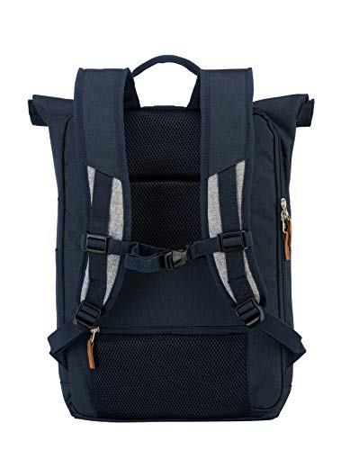 Der in zwei Trendfarben erhältliche BASICS Rollup Rucksack inklusive gepolstertem Laptopfach bis 15,6 Zoll lässt sich aufrollen und schützt so den Inhalt vor unerlaubtem Zugriff. Er eignet sich besonders fürs Fahrradfahren oder Wandern, wo sie witterungsbedingt Regenschutzkleidung schnell mal ein- und auspacken müssen. Die atmungsaktive Rückwand des aufrollbaren Rucksacks sorgt selbst auf anstrengenden Wegen für gute Durchlüftung und ein angenehmes Tragefühl.