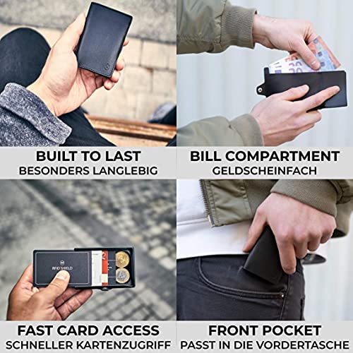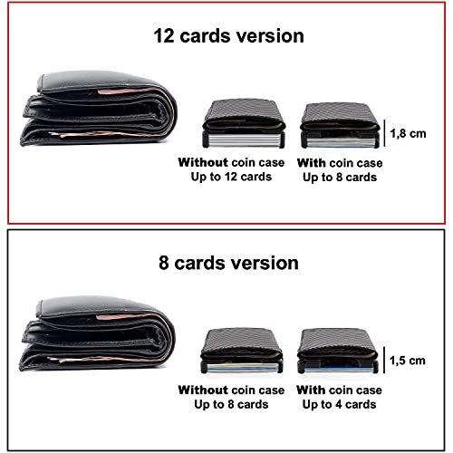 Specification: ZNAP Creditcardhouder met klem van aluminium en muntvak – RFID-bescherming – 8 of 12 kaarten versie – Slim Wallet – geld clip van SLIMPURO Znap, Zwart echt leer